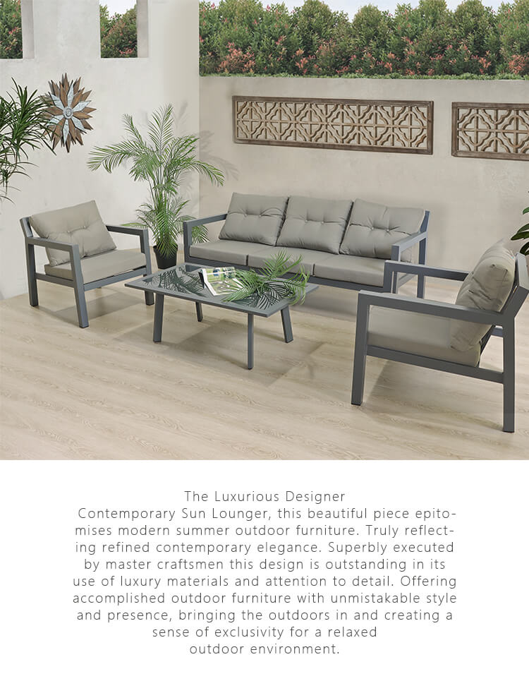 Transforme su patio en un refugio relajante con este hermoso juego de sofás de 4 piezas que cuenta con cojines gruesos y suaves para garantizar la comodidad.Un sofá de 3 plazas, 2 plazas individuales y una mesa de centro a juego ofrecen un amplio espacio para sentarse y servir para que usted y sus invitados disfruten de un refrigerio bajo el sol.Cada mueble es independiente y se puede reorganizar según sus preferencias.