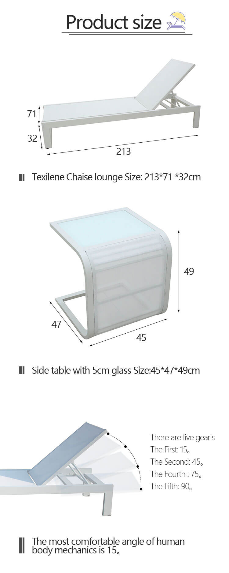 El diván viene con un cojín acolchado suave para mayor comodidad y relajación. El asiento espacioso y profundo se adapta a las personas de la mayoría de las alturas y se acuesta completamente en este sillón reclinable. El respaldo del sillón es ajustable para que usted elija, puede ajustarlo fácilmente al ángulo correcto que permite para sentarse, recostarse o acostarse por completo. La tumbona para exteriores está diseñada con un estilo artístico, será una adición llamativa a su espacio al aire libre.